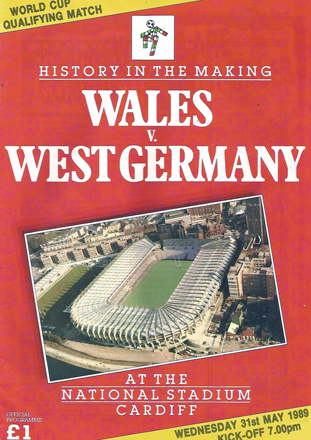 The home game against West Germany saw Wales play at The National Stadium, Cardiff for the first time and a creditable 0-0 draw raised Welsh fans' hopes bu defeat in Helsinki in the following game ended Wales' hopes of reaching the 1990 FIFA World Cup.